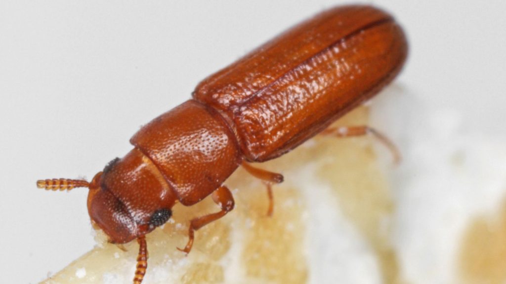 - Tribolium (petit coléoptère rougeâtre) : attaque la farine, le blé, les épices.